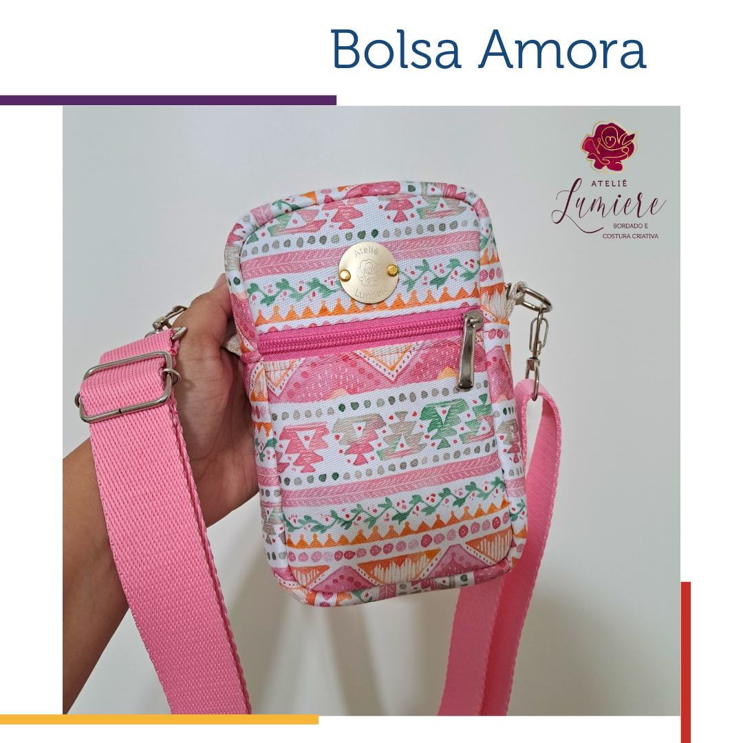 Bolsa Amora - Barrado indiano com rosa chiclete