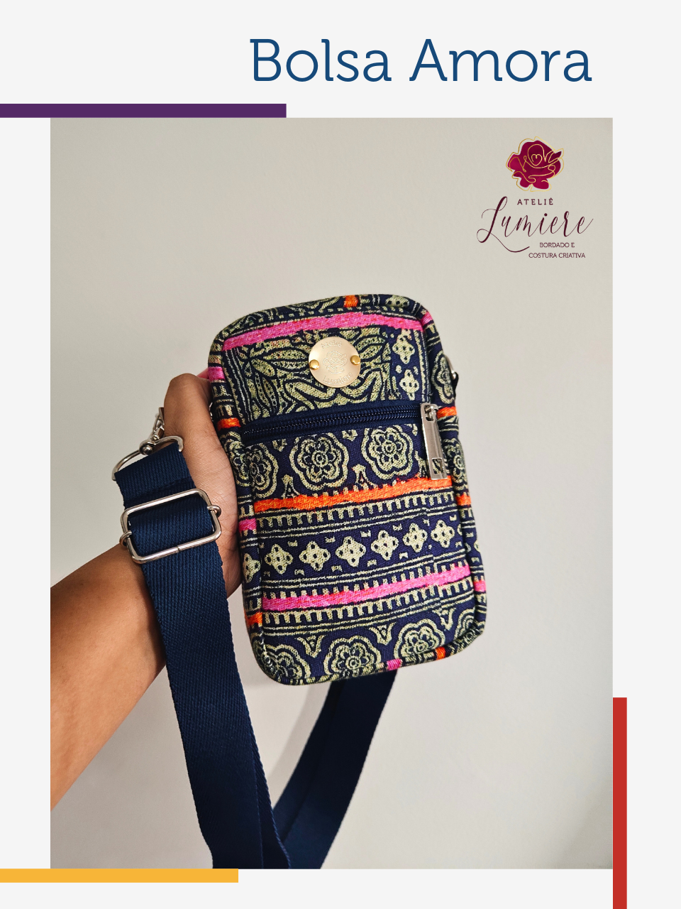 Bolsa Amora - Indiano com azul marinho