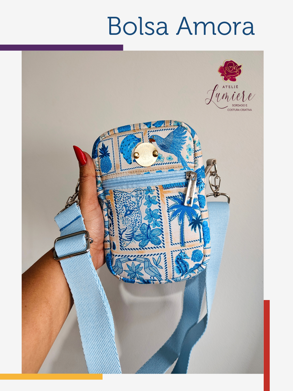 Bolsa Amora - Mosaico Tropical com azul bebê