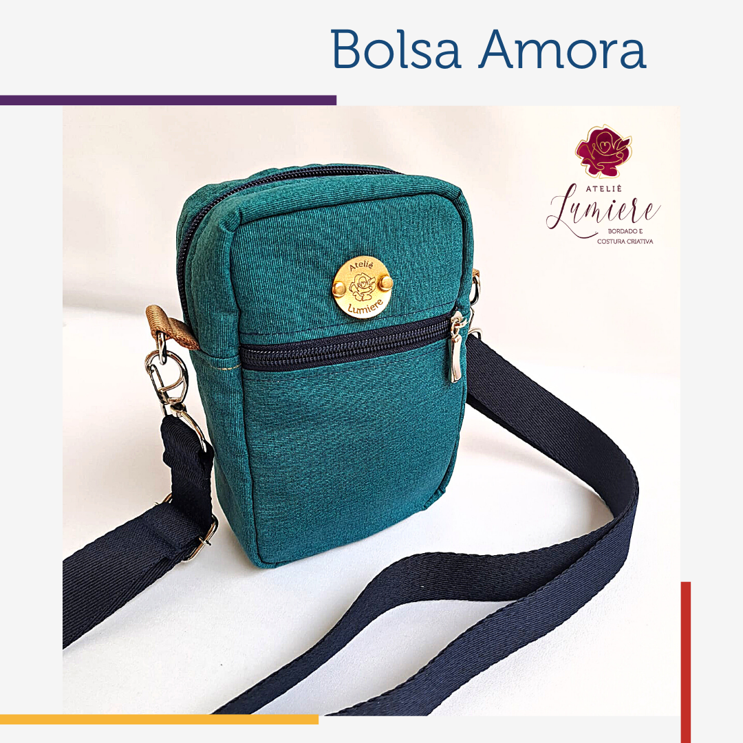 Bolsa confeccionada em sarja e tecido aqua block, 1 bolso na frente e 1 bolso atras sem zíper. Alça removível e com 70cm de altura. Ferragem com tratamento anti ferrugem. Medida: alt 17 x cmpr 11 cm, larg 6 cm.