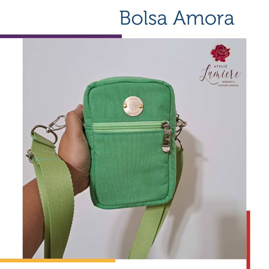 Bolsa confeccionada em sarja e tecido aqua block, 1 bolso na frente e 1 bolso atras sem zíper. Alça removível e com 70cm de altura. Medida: alt 17 x cmpr 11 cm, larg 6 cm.