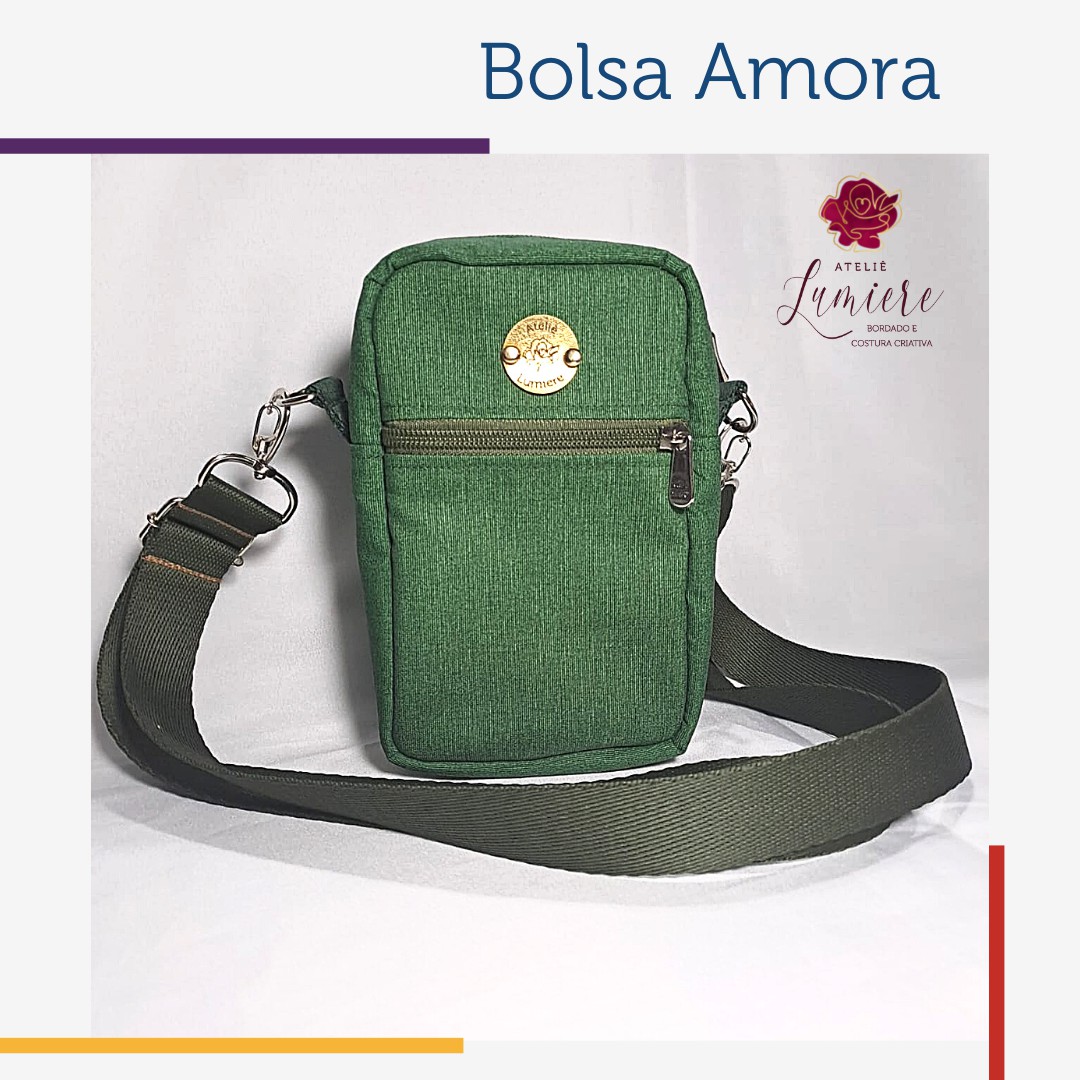 Bolsa confeccionada em sarja e tecido aqua block, 1 bolso na frente e 1 bolso atras sem zíper. Alça removível e com 70cm de altura. Medida: alt 17 x cmpr 11 cm, larg 6 cm.
